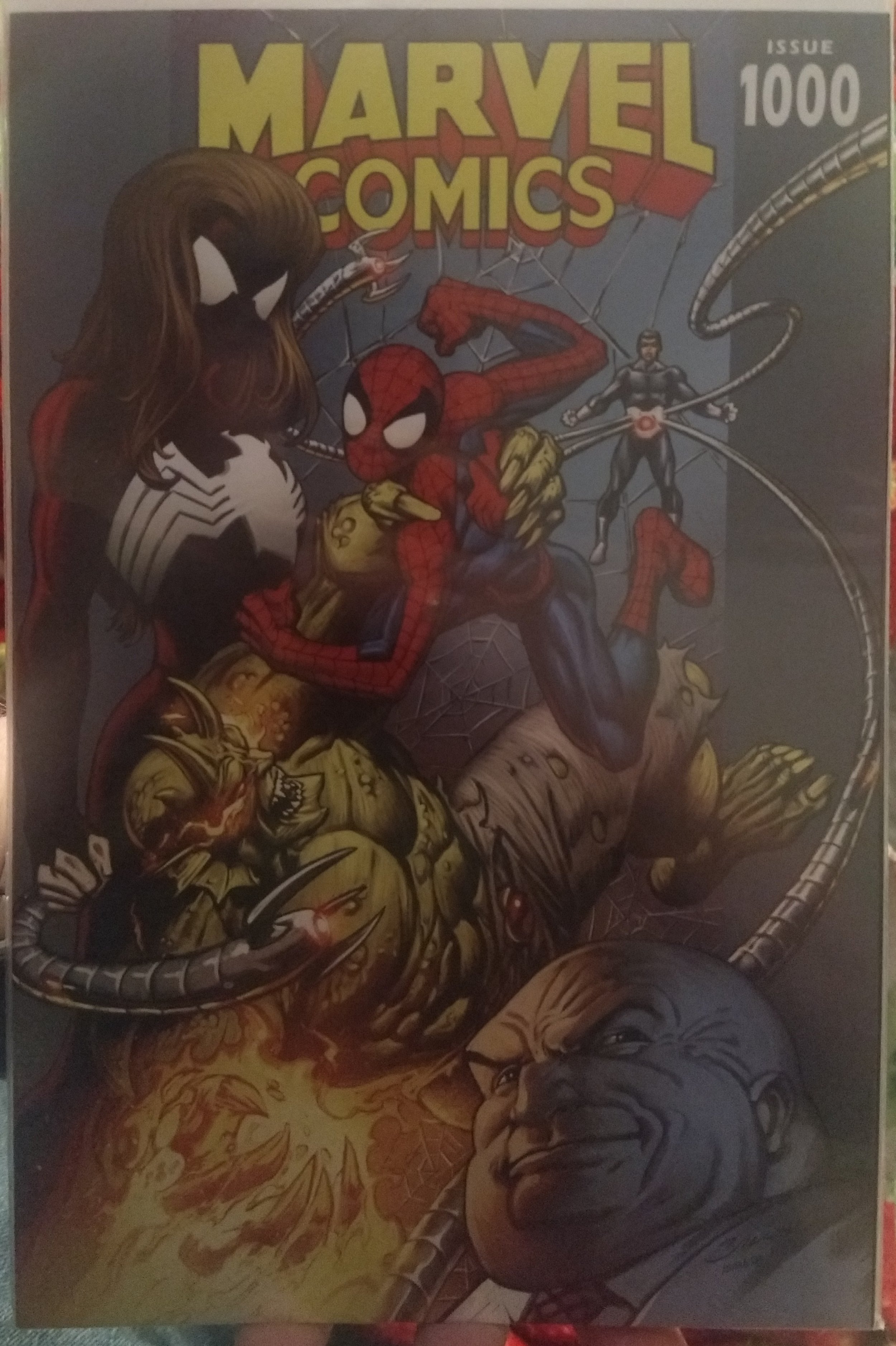 Here is a Amazing copy of Marvel Comics #1000 NM condition. All Comics from me will be bagged and boarded and free item with purchase while supplies last.