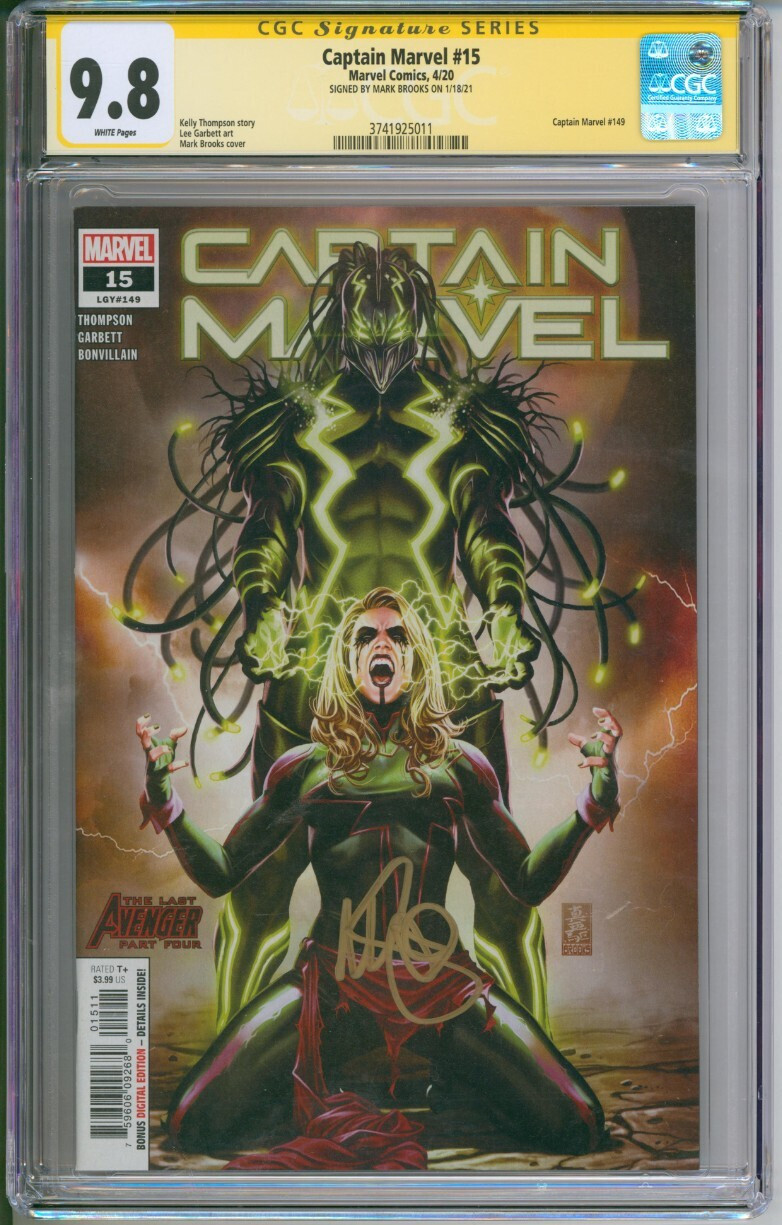 Grade: 9.8 Near Mint/MintMarvel Comics Captain Marvel #15 CGC Signature Series 9.8 Signed by Mark Brooks Captain Marvel CGC 9.8 signed by Mark BrooksMarvel Comics, 4/20 White PagesCGC Cert #3741925011TitleCaptain MarvelIssue15Issue Date4/20Issue Year2020PublisherMarvel ComicsGrade9.8Page QualityWHITEGrade Date2021-01-21Grade CategorySignatureArt CommentsKelly Thompson storyLee Garbett artMark Brooks coverKey CommentsCaptain Marvel #149SignaturesSIGNED BY MARK BROOKS ON 1/18/21SEE SCANS FOR ACTUAL PRODUCTALL ITEMS SHIPPED SECURELY** CHECK OUR STORE FOR MORE GREAT CGC GRADED ITEMS!!!WE OFFER COMBINED SHIPPING ON ALL ITEMS!!OR REQUEST LOCAL PICK UP IF YOU ARE IN THE METRO DETROIT AREA!WE SHIP INTERNATIONALLY USING Hip GLOBAL SHIPPINGBIG BEN'S COMIX OASIS HAS BEEN SERVING CUSTOMERS OF COMICS AND COLLECTIBLES FOR OVER 30 YEARS. WE HAVE AN EXTENSIVE INVENTORY AND A KNOWLEDGEABLE STAFF. CHECK OUT OUR Hip STORE FOR MORE COOL AND RARE ITEMS! ALSO WE ARE ALWAYS BUYING COMICS! Captain Marvel CGC 9.8 signed by Mark BrooksMarvel Comics, 4/20 White PagesCGC Cert #3741925011TitleCaptain MarvelIssue15Issue Date4/20Issue Year2020PublisherMarvel ComicsGrade9.8Page QualityWHITEGrade Date2021-01-21Grade CategorySignatureArt CommentsKelly Thompson storyLee Garbett artMark Brooks coverKey CommentsCaptain Marvel #149SignaturesSIGNED BY MARK BROOKS ON 1/18/21SEE SCANS FOR ACTUAL PRODUCTALL ITEMS SHIPPED SECURELY** CHECK OUR STORE FOR MORE GREAT CGC GRADED ITEMS!!!WE OFFER COMBINED SHIPPING ON ALL ITEMS!!OR REQUEST LOCAL PICK UP IF YOU ARE IN THE METRO DETROIT AREA!WE SHIP INTERNATIONALLY USING Hip GLOBAL SHIPPINGBIG BEN'S COMIX OASIS HAS BEEN SERVING CUSTOMERS OF COMICS AND COLLECTIBLES FOR OVER 30 YEARS. WE HAVE AN EXTENSIVE INVENTORY AND A KNOWLEDGEABLE STAFF. CHECK OUT OUR Hip STORE FOR MORE COOL AND RARE ITEMS! ALSO WE ARE ALWAYS BUYING COMICS!Hip integration by
