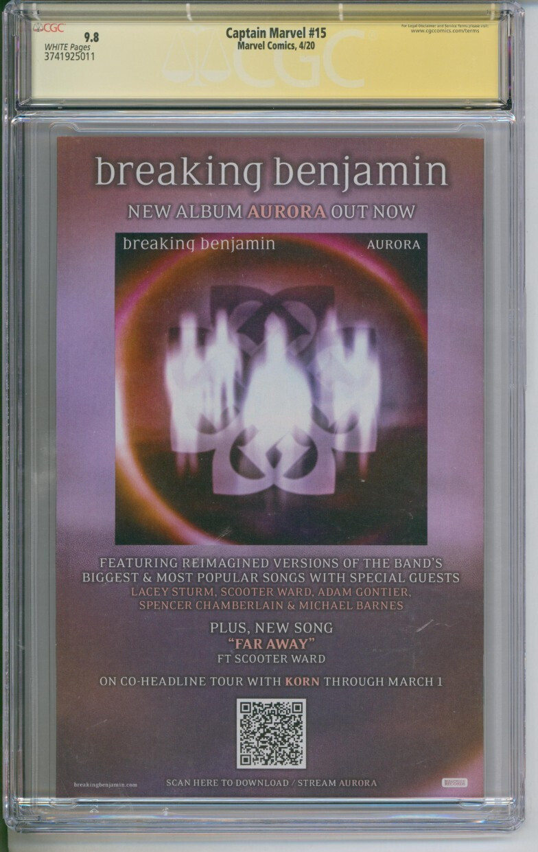 Grade: 9.8 Near Mint/Mint Marvel Comics Captain Marvel #15 CGC Signature Series 9.8 Signed by Mark Brooks Captain Marvel CGC 9.8 signed by Mark BrooksMarvel Comics, 4/20 White PagesCGC Cert #3741925011TitleCaptain ... Read More