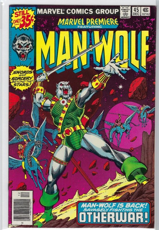 Marvel Comics Premiere Man-Wolf No 45 45 Cents 1978. This is in very good condition. this is a Bronze Age comic, but it has come through with all pages and covers intact and in decent condition. This would be a good addition to any collection.Seller Information