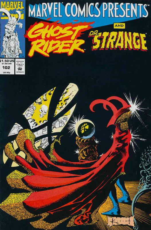 Item: Marvel Comics Presents #102 | Publisher: Marvel | Cover Date: May 1992 | Writer: Scott Lobdell, Gerry Conway, Howard Mackie, Gary Barnum | Artist: Rick Leonardi, Tom Sutton, Gene Colan, Dave Hoover | Cover Artist: Sam Kieth | Appearances: Wolverine (James Howlett/Logan), Nightcrawler (Kurt Wagner), Moonstalker (Kiana), Ghost Rider (Danny Ketch), Doctor Strange (Stephen Strange), Phantom Rider (Hamilton Slade) | Storylines: Wolverine/Nightcrawler: Male Bonding, Part 2; Wherever We Go; Young Gods: Against a Rogue God, Part 2; A Meeting With the Masters; Ghost Rider/Dr. Strange: Doorway to Darkness, Part 2; Gathering; Phantom Rider: Stunt Show | Notes: Wolverine, Nightcrawler; Flipbook | With Economy shipping, each additional comic ships for just 50 cents more to customers in the USA. This listing contains a stock photo and information from ComicBase™ and © Human Computing. The stock photo is for reference only. If you would like to see a photo of the actual item, please message us prior to purchasing.Seller Information