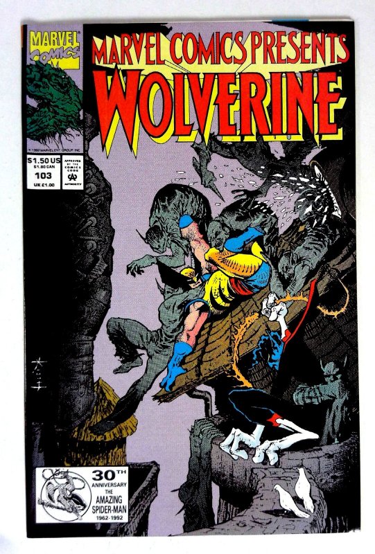 Marvel Comics Presents #103 Dracula Marvel (1992) NM- Marvel Comics Presents Wolverine battles Dracula on the cover. Published by Marvel in 1992, this issue is in NM- condition. TITLE: Marvel Comics Presents ISSUE: 103 GRADE: NM- SKU: VE-38-143Seller Information