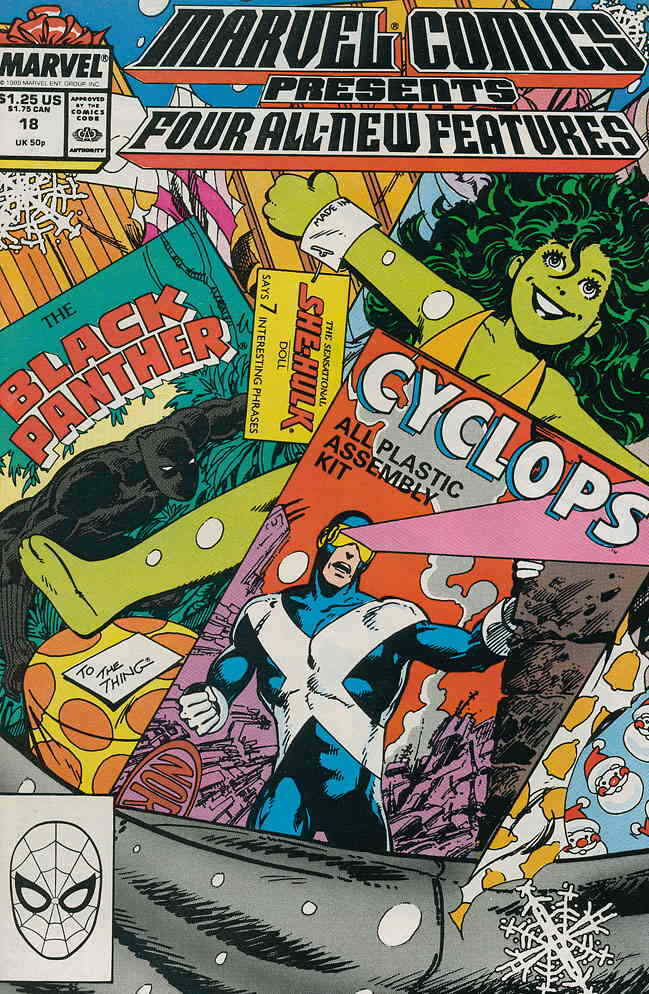 NOTES: Cyclops, Black Panther, She-Hulk, Willie Lumpkin; Cyclops story; Black Panther story; She-Hulk story; Willie Lumpkin story