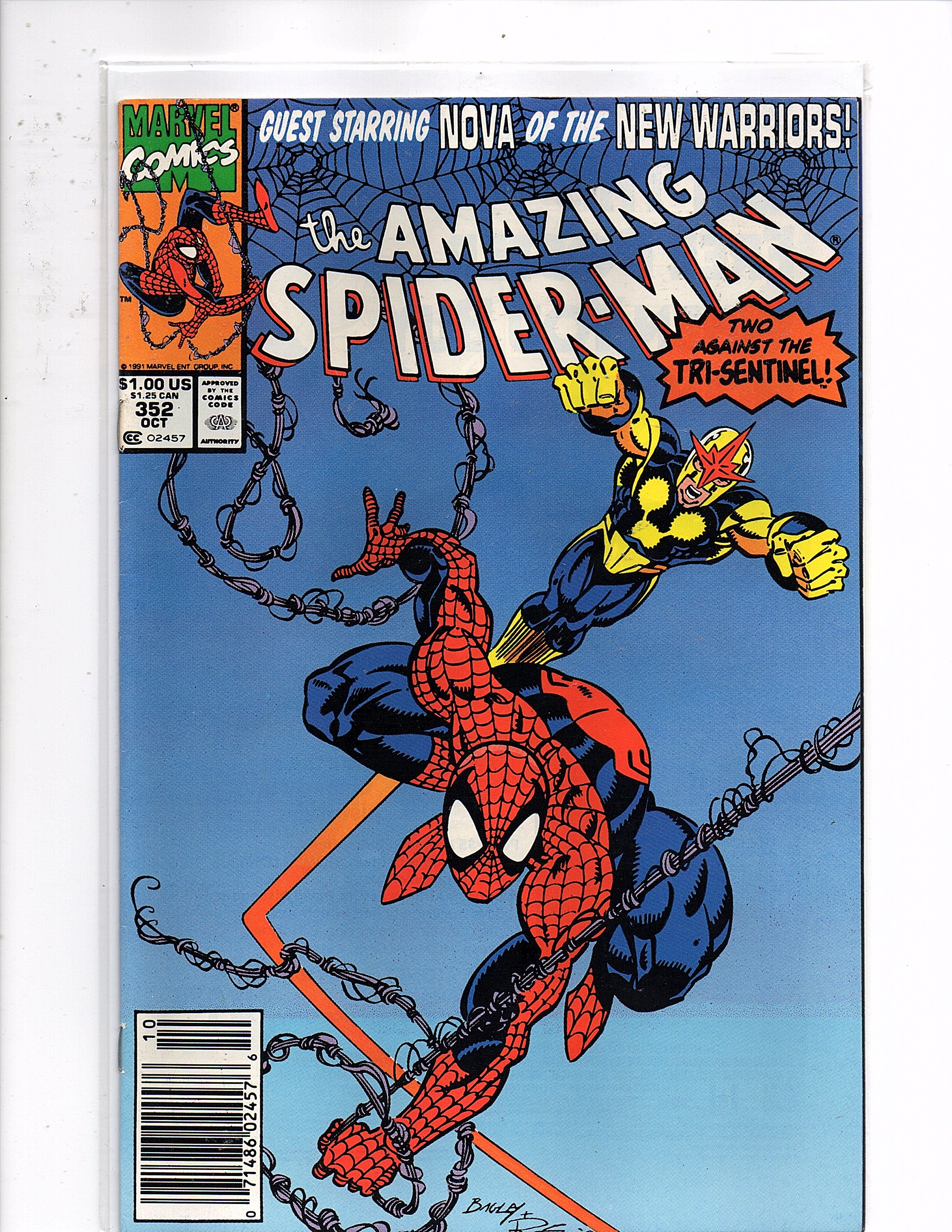 Marvel Comics The Amazing Spider-Man #352 Nova Tri-Sentinel Mark Bagley Art