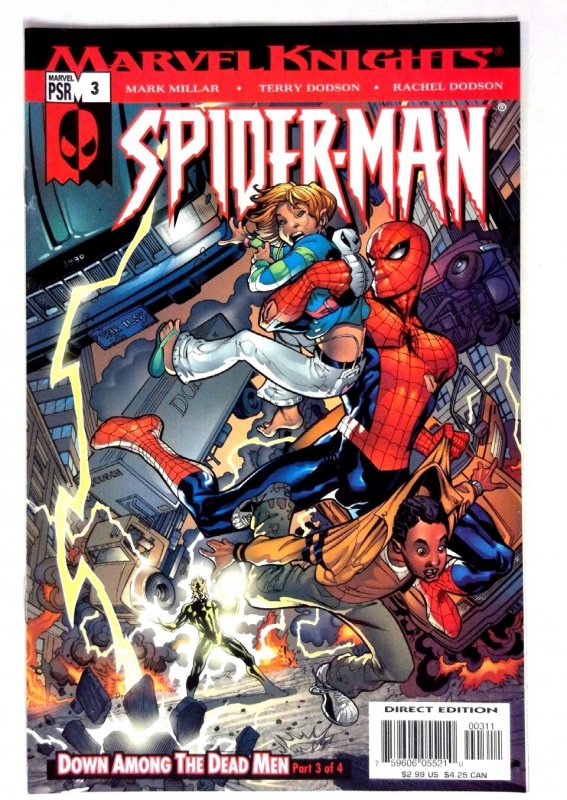 Marvel Knights Spider-Man #3 (2004) NM- Electro Marvel Knights Spider-Man Electro creates chaos amid a city scene. Written by Mark Millar with art by Terry and Rachel Dodson. TITLE: Marvel Knights Spider-Man ISSUE: 3 GRADE: NM- SKU: VE-34-066Seller Information