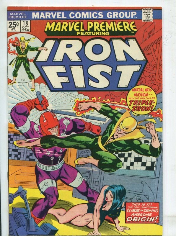 MARVEL PREMIERE #18 - IRON FIST "TRIPLE IRON" (9.2) 1974