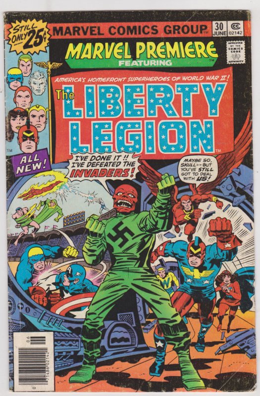 Marvel Premiere #30 by Marvel Comics copyright 1976. I have graded the comic book, using the Overstreet Grading Guide, at VERY GOOD with the following defects: Light stress marks along the spine. The corners are rounded. Some small folds in the lower right corner. There is some yellowing through out the pages.Seller Information
