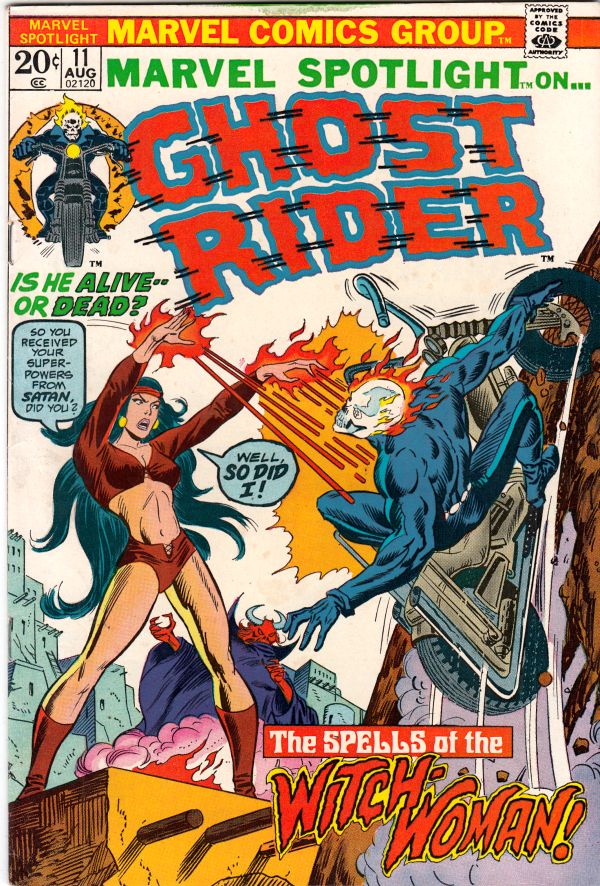 Marvel Spotlight on Ghost Rider #11 - The Spells of the Witch Woman! APPEARANCE - Witch-Woman CONTENT - Last Ghost Rider Wow! This book has a really nice white cover with a small ding at the base of the spine Cha ... Read More