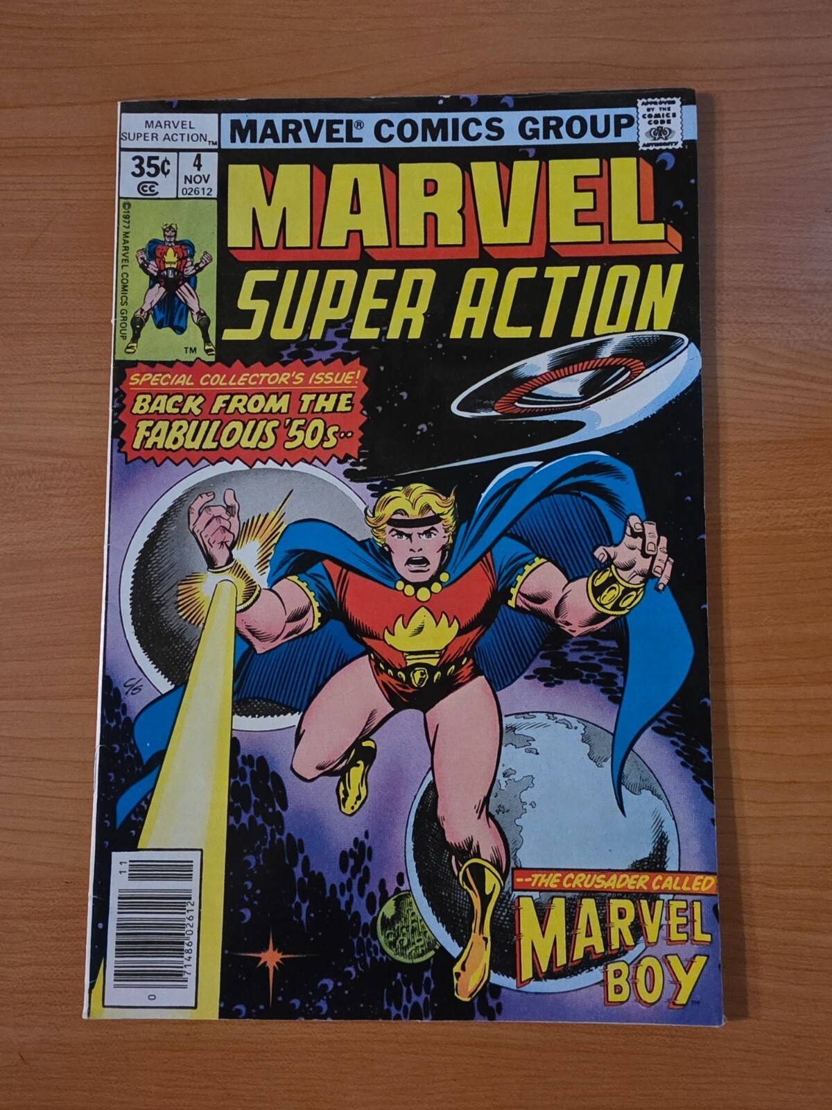 Item DescriptionMarvel Super Action #4 Newsstand Variant Publisher: Marvel ComicsPublished: 1977Item Grade/ConditionGrade: VERY FINE - NEAR MINTFor more information about this grade and other grades, please see our grading standards.~ WE TAKE HIGH DEFINITION PICTURES OF OUR COMICS ~ For more detail use the ZOOM Function and check them out yourself! ~Shipping Info:United States: Comic Book & Magazine Orders of all sizes, big and small ship for a flat Single Shipping ChargeInternational: We use Calculated Shipping! ~ This insures that you get the LOWEST POSSIBLE COST! ~ Please give us one business day to calculate large orders! The Calculator for Hip is pretty bad for international, contact us if you are looking to order multiple books so we can help you make it work on the back end! As a courtesy to our customers, we insure all orders over 50$ US ~ YOU DONT PAY EXTRA!Delivery TimeWe process and ship all orders within 1 business days. Once shipped, estimated U.S. transit time is 2-10 business days; international 14-21 business days.(Orders placed on Friday afternoon as well as weekends will be shipped the next business day as we do not ship on the weekends).PackingOmnomax Traders has mastered packing to ensure our orders of a "damage-free transport."Using the following methods, we have seen a nearly perfect 99% success rate for undamaged comics!Here is how our orders ship:All Orders :Bagged AND Boarded, ALWAYS NO EXCEPTIONS!Shipped in a Gemini Comic Mailer OR Tightly secured between 4x stiff pieces of corrugated cardboard (double Sandwiched)Sealed on all 4 sides with strong packing tape (Items doesn't even wiggle).:*Now this method is nearly perfect! however we have seen damage happen to items ( only once or twice a year ) ~ this is often due to bad handling by the postal service. Always remember to contact us if this happens! we are committed to quality service!*Offers History