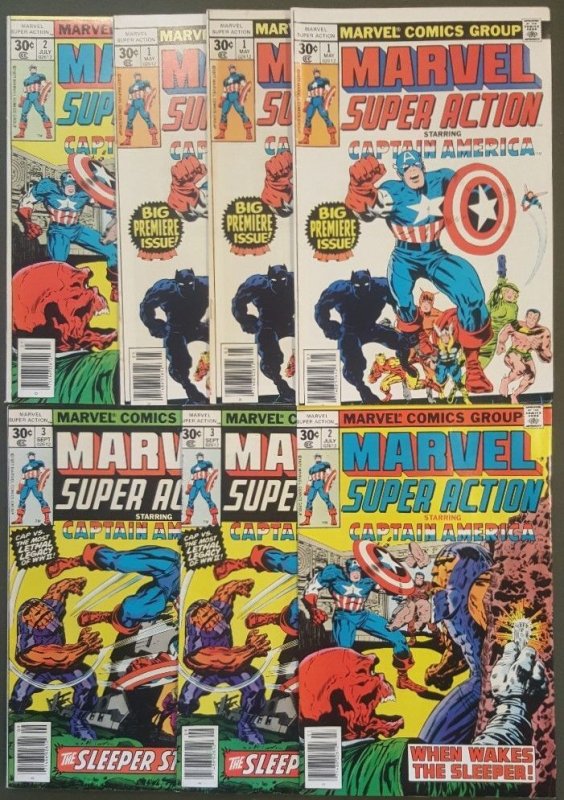 MARVEL SUPER ACTION (1977) #1 (3 copies), #2 (2 copies) and #3 (2 copies). Overall average grade for the lot is VF 8.0 or better. 2022 Overstreet value for this 7 issue group is $125.00 based on condition. (BS43)..... Items will be shipped in a USPS MEDIUM FLAT RATE PRIORITY BOXES. Check out our store and save money by combining multiple purchases to save on shipping costs.