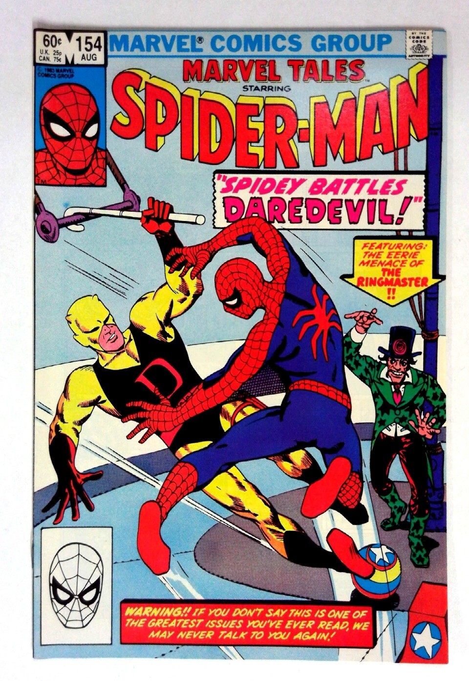Marvel Tales #154 (1983) VF/NM Daredevil Marvel Tales Daredevil and the tricky Ringmaster feature in a thrilling confrontation. TITLE: Marvel Tales ISSUE: 154 GRADE: VF/NM SKU: VE-34-161