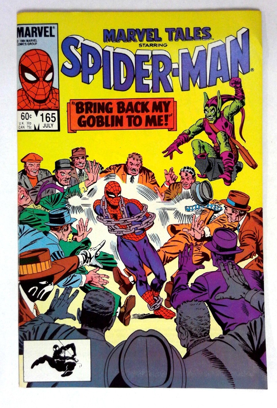 Marvel Tales #165 (1984) VF/NM Green Goblin Marvel Tales A chained hero confronts a purple-clad villain amid a crowd. Classic confrontation with vivid colors. TITLE: Marvel Tales ISSUE: 165 GRADE: VF/NM SKU: VE-34-172Seller Information