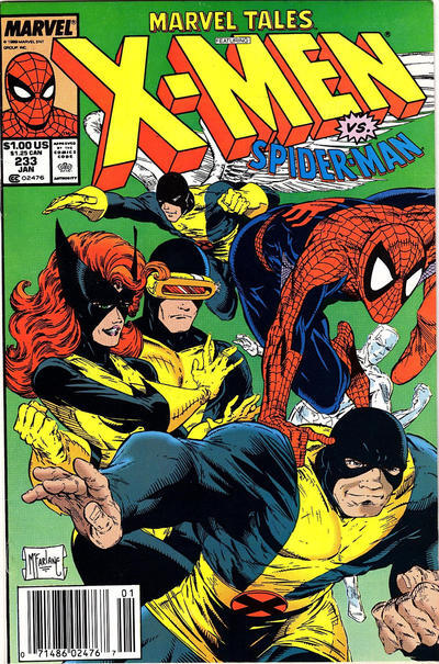 Item: Marvel Tales (2nd Series) #233 (Newsstand) | Publisher: Marvel | Cover Date: January 1990 | Writer: Roy Thomas, Danny Fingeroth | Artist: Werner Roth, Alan Kupperberg | Cover Artist: Todd McFarlane | Appearances: X-Men, Spider-Ham | Storylines: Along Came a Spider…; Spider-Ham: Too Much Zombie Business | Notes: Reprints X-Men (1st Series) #35; newsstand edition | With Economy shipping, each additional comic ships for just 50 cents more to customers in the USA. This listing contains a stock photo and information from ComicBase™ and © Human Computing. The stock photo is for reference only. If you would like to see a photo of the actual item, please message us prior to purchasing.Seller Information