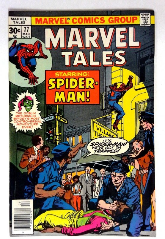 Marvel Tales #77 (1977) VF Green Goblin Marvel Tales Green Goblin returns in a controversial adventure, set in a bustling city with officers involved. TITLE: Marvel Tales ISSUE: 77 GRADE: VF SKU: VE-34-110