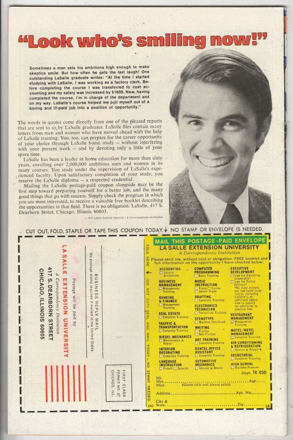Wow! This book has deep rich color and very sharp eye-appeal on this all-time-classic Enforcer sniper cover! There is one small bend/stress at the top staple area and a whisper of a small edge-bend at the top of the back spine. Both of these you have to look closely to see.