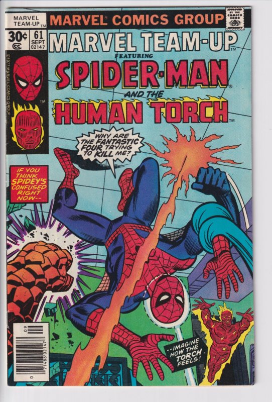 MARVEL TEAM-UP #61 Human Torch (Sep 1977) FN 6.0 off white to white!