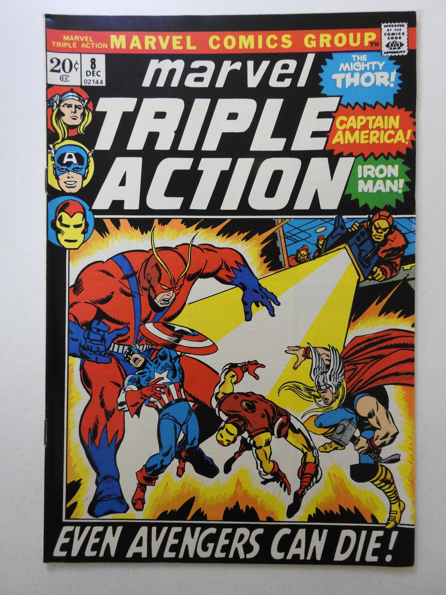 Marvel Triple Action #8 (1972) "Even Avengers Can Die!" Sharp Fine+ Condition!