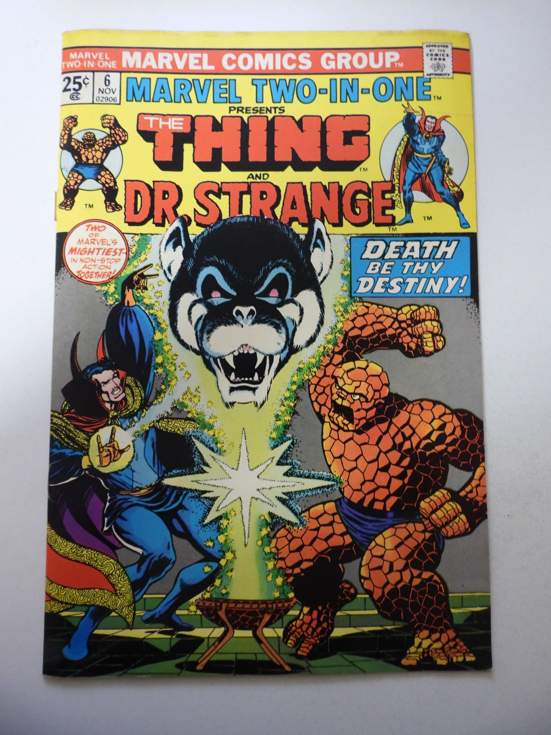 Marvel Two-in-One #6 (1974) VG+ Condition cover detached at 1 staple MVS intact