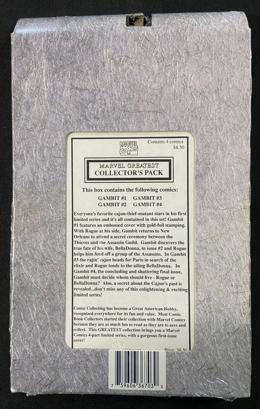 Condition:MARVEL'S GREATEST COLLECTOR'S PACK GAMBIT #1-4 SEALED VF/NMMARVEL'S GREATEST COLLECTOR'S PACK GAMBIT #1-4 SEALED VF/NMSize: .5" x 7" x 11"