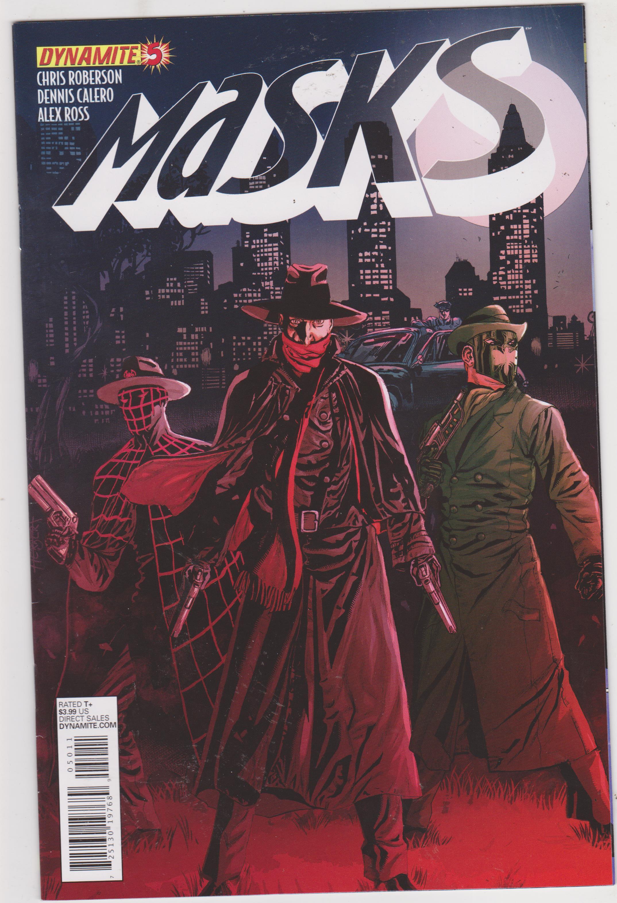 Masks #5 by Dynamite Entertainment copyright 2012. I have graded the comic book, using the Overstreet Grading Guide, at FINE/VERY FINE with the following defects: Light stress marks along the spine. The corners are rounded. There is light yellowing of the pages.Seller Information