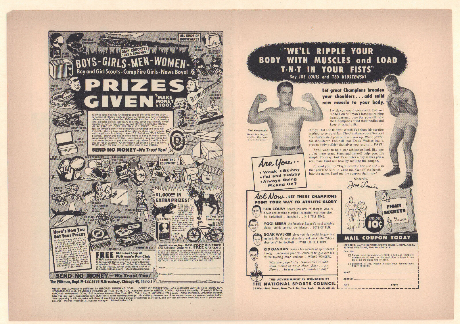 Condition: NOTE: This is an UNUSED comic book cover that never got stapled into a book. It may have some light ... Read more about the seller notes NOTE: This is an UNUSED comic book cover that never got stapled into a book. It may have some light wear, small tears, and fraying around the edges. Read Less about the seller notesMelvin the Monster #2 Unused Comic Book Cover - Marvel (Grade 7.0) 1956Size: 15.5" x 11"This item was uploaded by Bobby.If you have any specific questions or requests, please ask us prior to ordering and we'll get back to you as soon as we can. If there are any problems with your order whatsoever, please message us before leaving feedback and we'll be happy to work with you to fix the situation! We ship worldwide, combine purchases, and charge exact shipping. The price may vary based on size, weight, and location. If you are automatically overcharged for shipping, message us and we'll be happy to revise the invoice or refund you the excess amount. If you have any questions regarding shipping, please message us. International Buyers - Please Note: Import duties, taxes, and charges are not included in the item price or shipping cost. These charges are the buyer's responsibility. Please check with your country's customs office to determine what these additional costs will be prior to bidding or buying. Payment can be made by PayPal and credit cards directly. 70,000+ items in total in my Hip store! Frequently Asked Questions: When are your operation hours?Our in office hours are Monday - Friday, 11 am - 9 pm. We are not open on weekends, so if you send us a request on Friday evening we won't get back to you until Monday afternoon. Please don't take it as us ignoring you! We will work on your request Monday and get back to you as soon as we can. Also, if you order from us on a Friday evening or Saturday morning we won't start processing your order until we open on Monday. That means on Monday it will be pulled and prepped for shipping, then picked up by the postman on Tuesday morning.When will you ship my item? The tracking hasn't moved.We realize you're eager to get your item, so if the tracking hasn't moved in a few days please don't be concerned. We give the postman a lot of packages daily, sometimes as many as 100, so he does not scan each item for us upon pickup as he says it would be too time consuming for him to do so. If you get a tracking number from us, that almost always means your item was picked up by the postman the next business day. The USPS is also imperfect. There are times when the tracking won't even show movement until it's in your area's regional distribution center. This is normal in our experience. Is the item pictured the exact one for sale?Yes! We don't use stock images and go through great lengths to scan or photograph everything we list. The item pictured is exactly what you should receive UNLESS it is a fixed price listing with multiple items available. Can you issue a COA? We can, upon request. Please make sure you leave us a note while checking out and shoot us a message immediately after requesting one, just to be sure. How do you grade?Grading is very subjective, but we are professionals with decades of grading experience between us who try the best we can to accurately describe the condition of the items we list. Anthony is an Overstreet Comic Book Price Guide Advisor Please see the grading chart below for a breakdown of how we grade: NOTE: We don't grade any raw books higher than 9.2, as once you go higher than that grading gets really subjective. If you buy a NM book from us, it may very well be higher than 9.2 but we play it safe and grade conservatively. 9.2 NM Near Mint 9.0 VF/NM Very Fine/Near Mint 8.5 VF+ Very Fine+ 8.0 VF Very Fine 7.5 VF- Very Fine- 7.0 FN/VF Fine/Very Fine 6.5 FN+ Fine+ 6.0 FN Fine 5.5 FN- Fine- 5.0 VG/FN Very Good/Fine 4.5 VG+ Very Good+ 4.0 VG Very Good 3.5 VG- Very Good- 3.0 GD/VG Good/Very Good 2.5 GD+ Good+ 2.0 GD Good 1.8 GD- Good- 1.5 FR/GD Fair/Good 1.0 FR Fair 0.5 PR PoorHow do you ship comics? We ship in rigid cardboard mailers to protect your comic book from the worst the mail system has to offer. Price varies based on the number of books you purchase, but we try to keep costs as low as we can and charge exact shipping. If it looks unusually high to you please send us a message and we'll be happy to double check for you. Do you combine shipping? Yes, of like items. Such as: several comics can fit in one cardboard mailer, as can more than one record. Multiple art pages can easily be combined because they are light and thin. Where combined shipping differs is with size and weight. For instance, two statues require a much bigger box. Same goes for CGCs, as the package gets bigger and heavier as you go. Do you ship well? I've had some bad experiences... You needn't worry; we are professionals who value your business and want your item to arrive safely as much as you do. I have been collecting for over 30 years. I send out items the way I would like to receive them. The tracking says my item is "OUT FOR DELIVERY" in New Jersey. Why is that?If the tracking indicates that the item is "OUT FOR DELIVERY" in NJ don't worry, it's just what the tracking says when it's carried over from the postman to the sorting center. This is normal for our Post Office and will not impact you receiving your item in a timely matter.What is the difference between a RUN and a LOT?Good question. A RUN will be a collection of consecutive issues with no breaks in between them. If it says RUN of #s 1 - 50 you will receive 50 consecutive comics. A LOT will be within a certain range, so a 50pc LOT will not contain consecutive books.I changed my mind after successfully winning the auction or fixed price listing, will you cancel the transaction? Please only bid or hit BUY IT NOW if you are willing to follow through and pay for the item, we will not cancel the transaction. As a seller, Hip penalizes us every time we cancel an order, so i