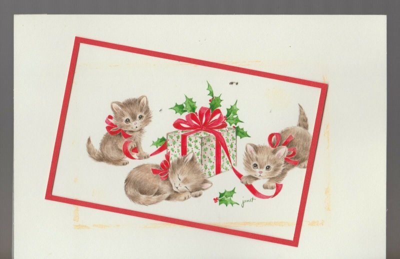 Condition: Grade & Condition: FVF 7.0 , SEE PICS!!! Grade: 7.0 FN/VF MERRY CHRISTMAS Three Kittens Playing w/ Present 9x6" Greeting Card Art #FL433 (red border was glued back into proper position)One-of-a-kind or ... Read More
