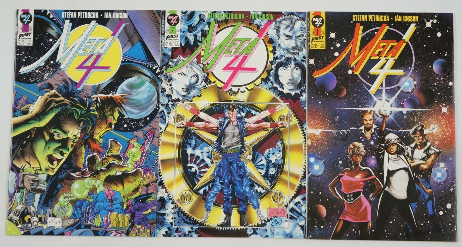 Meta-4 #1-3 is published by First. Written by Stefan Petrucha. Illustrated by Ian Gibson. Complete series