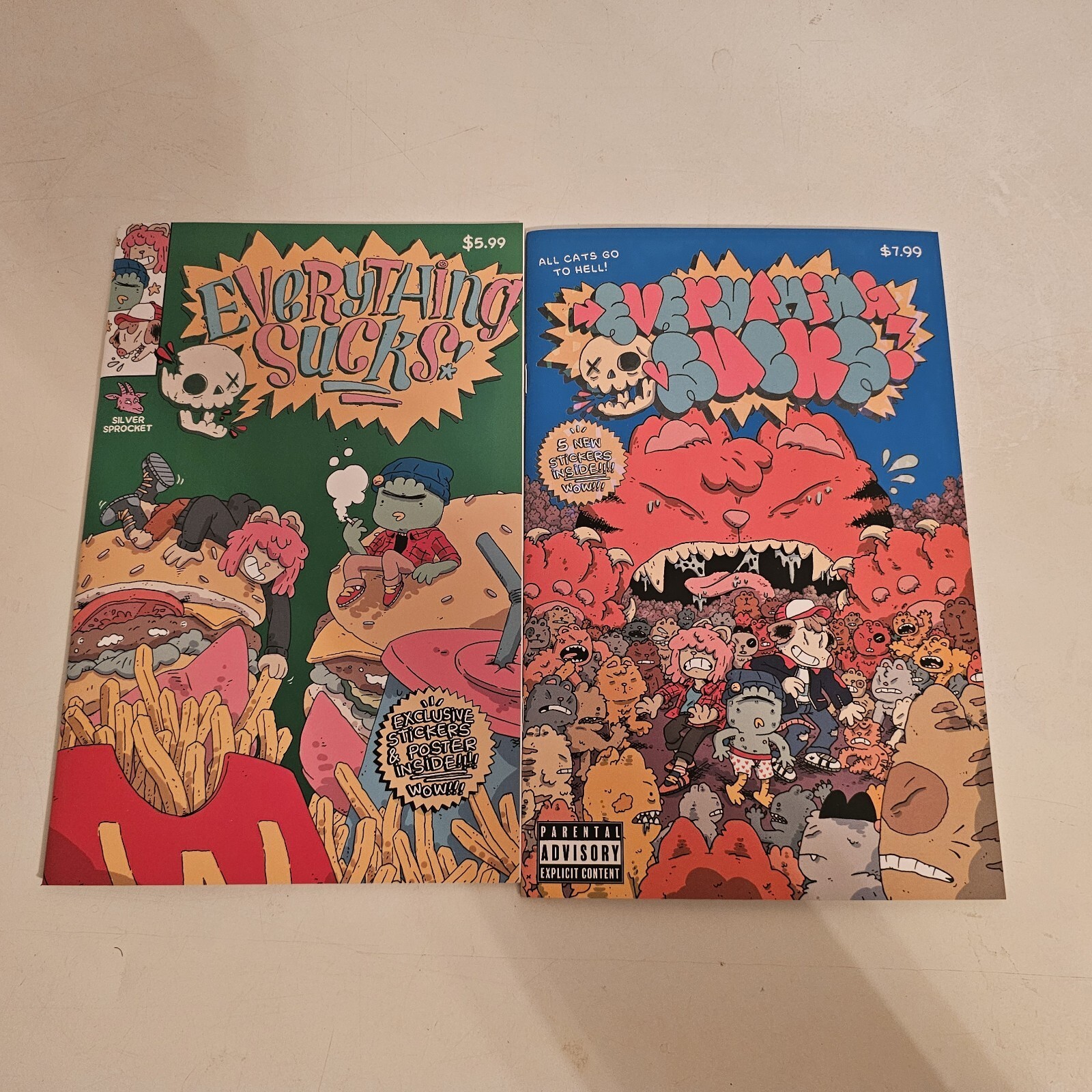 Grade: 9.8 Near Mint/MintNew indie gem from Michael Sweater Silver Sprocket EVERYTHING SUCKS 1 + AllCats Go to Hell Real Gamer Hours Friends Forever All posters and stickers included (mature readers please) NM condition