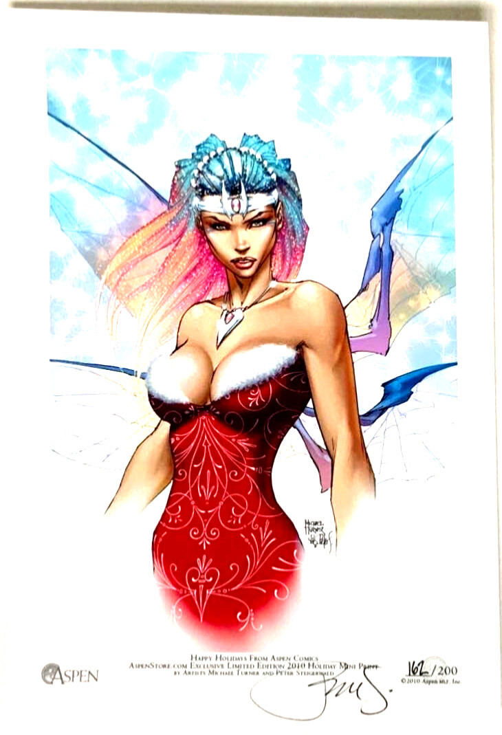 Aspen exclusive limited edition 2010 holiday mini sketch art print by artists michael turner & peter steigerwald.Color print signed by michael turner.B&w limited to 75 prints 21/75.Color limited to 200 prints 162/200.
