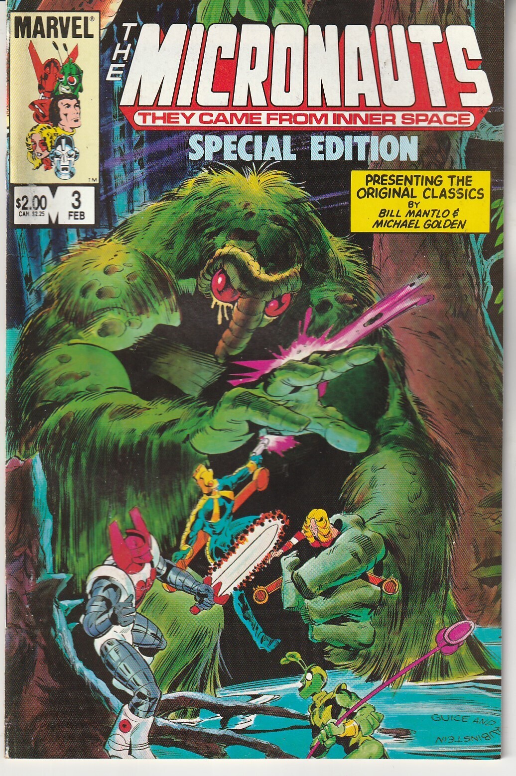Third of a Five part Special Edition Format representing the 1st twelve issues of the popular Marvel Micronauts as presented by the original creative team of writer Bil Mantlo and Artist Michael Golden. Original Cover art by Flash/Resurrection Man artist Butch Guice and Spiderman artist Joseph Rubenstein
