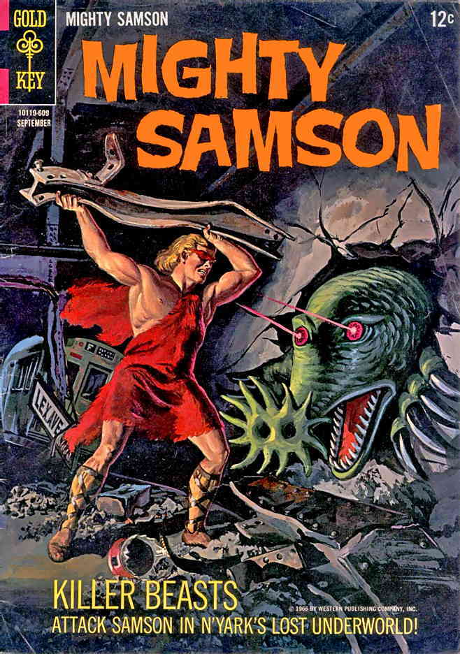 Item: Mighty Samson #7 | Publisher: Gold Key | Cover Date: September 1966 | Writer: Otto Binder | Artist: Frank Thorne, Mike Sekowsky | Cover Artist: Morris Gollub | Appearances: Mighty Samson, Tom Morrow, Mindor, Sharmaine | Storylines: Underground World; The World of Darkness; Mind over Matter; The Enemy Below; Lost Civilizations: Angkor, the Forgotten Metropolis (text); Beneath the City | Notes: Back cover pin-up | With Economy shipping, each additional comic ships for just 50 cents more to customers in the USA. This listing contains a stock photo and information from ComicBase™ and © Human Computing. The stock photo is for reference only. If you would like to see a photo of the actual item, please message us prior to purchasing.Seller Information