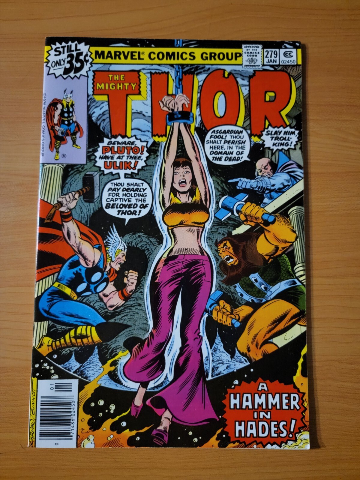 Item DescriptionMighty Thor #279 Newsstand VariantPublisher: Marvel ComicsPublished: 1979Item Grade/ConditionGrade: NEAR MINTFor more information about this grade and other grades, please see our grading standards.~ WE TAKE HIGH DEFINITION PICTURES OF OUR COMICS ~ For more detail use the ZOOM Function and check them out yourself! ~Shipping Info:United States: Comic Book & Magazine Orders of all sizes, big and small ship for a flat Single Shipping ChargeInternational: We use Calculated Shipping! ~ This insures that you get the LOWEST POSSIBLE COST! ~ Please give us one business day to calculate large orders! The Calculator for Hip is pretty bad for international, contact us if you are looking to order multiple books so we can help you make it work on the back end! As a courtesy to our customers, we insure all orders over 50$ US ~ YOU DONT PAY EXTRA!Delivery TimeWe process and ship all orders within 1 business days. Once shipped, estimated U.S. transit time is 2-10 business days; international 14-21 business days.(Orders placed on Friday afternoon as well as weekends will be shipped the next business day as we do not ship on the weekends).PackingOmnomax Traders has mastered packing to ensure our orders of a "damage-free transport."Using the following methods, we have seen a nearly perfect 99% success rate for undamaged comics!Here is how our orders ship:All Orders :Bagged AND Boarded, ALWAYS NO EXCEPTIONS!Shipped in a Gemini Comic Mailer OR Tightly secured between 4x stiff pieces of corrugated cardboard (double Sandwiched)Sealed on all 4 sides with strong packing tape (Items doesn't even wiggle).:*Now this method is nearly perfect! however we have seen damage happen to items ( only once or twice a year ) ~ this is often due to bad handling by the postal service. Always remember to contact us if this happens! we are committed to quality service!*Offers History