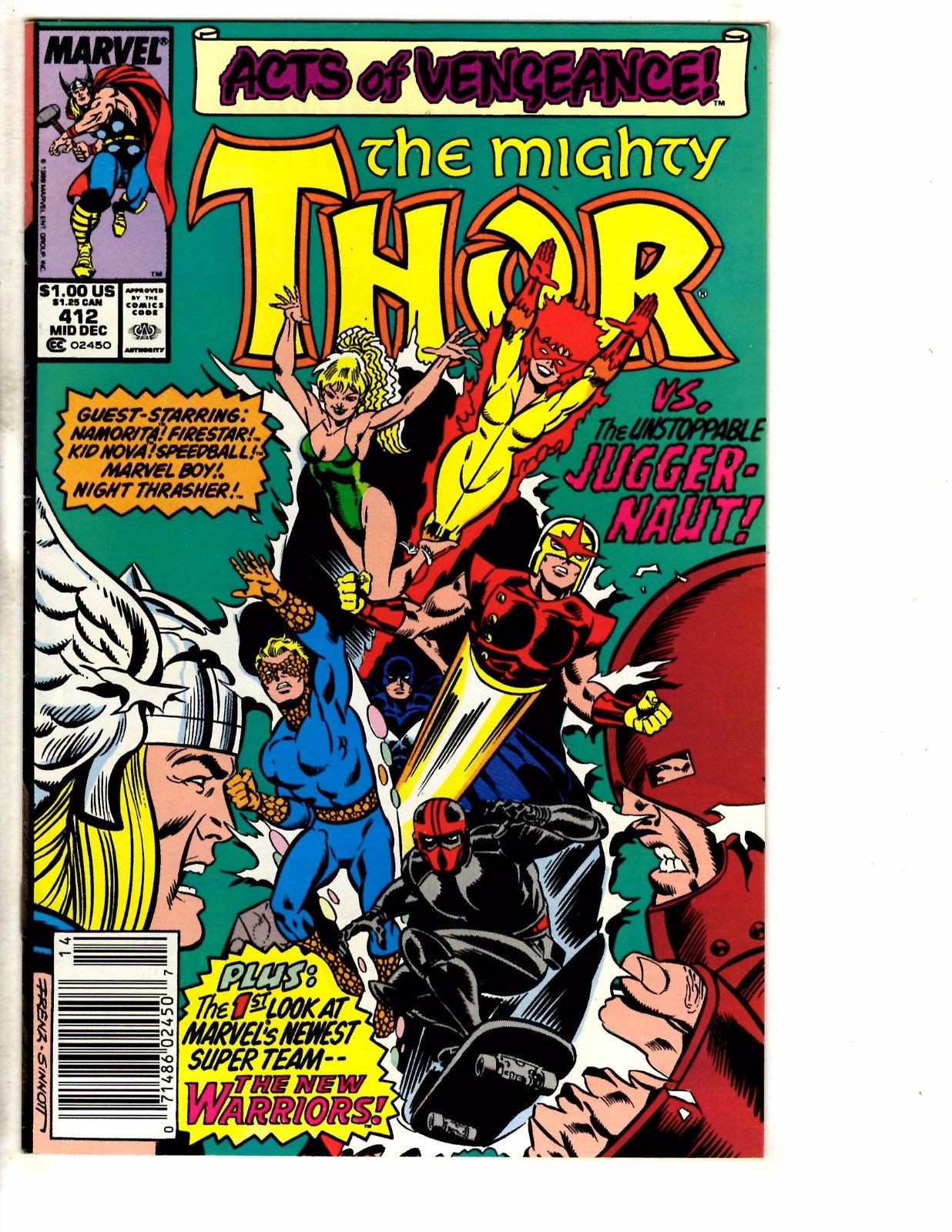 Mighty Thor # 412 VF Marvel Comic Book 1st New Warriors Appearance Key Nova HC4