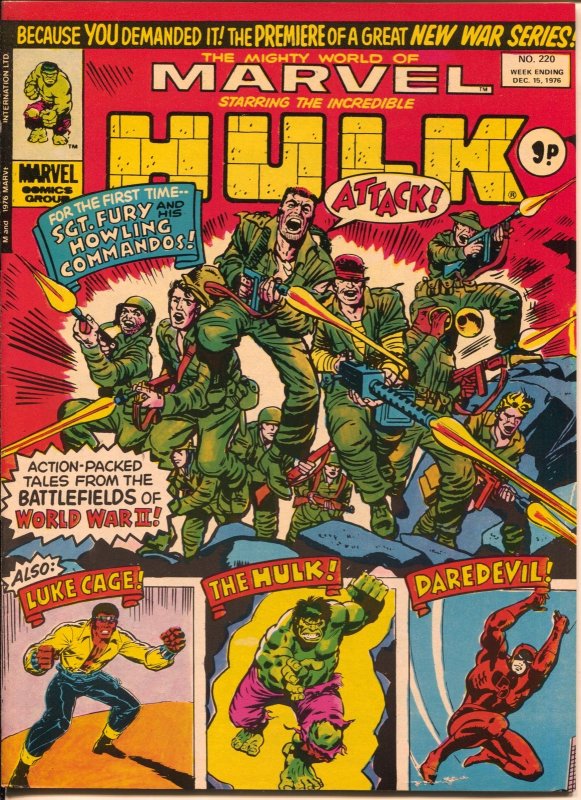 Grade: FN Mighty World of Marvel #220 1976-Luke Cage-Jack Kirby-1st Sgt Fury-FN -1st appearance of Sgt Fury and His Howling Commandos -Luke Cage, Hulk, Daredevil -Jack Kirby art Grade: FN SKU: Men-45-050