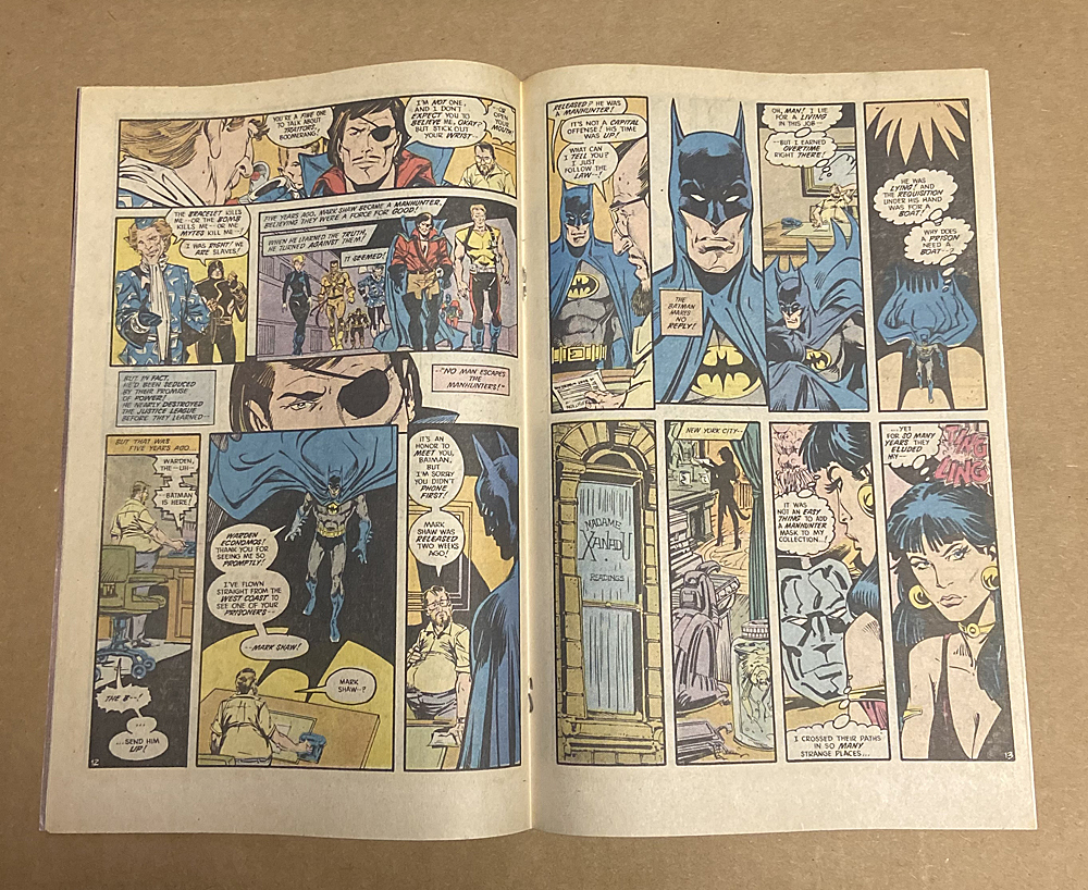 * This is week four of DC's increasingly repetitious companywide crossover of 1987. Green Lantern, Flash, and others protect several of the chosen ones, who have been selected to advance the human race. Batman and others search for the Manhunters. Written by Steve Englehart, with layouts by Joe Staton and finishes by Ian Gibson.
