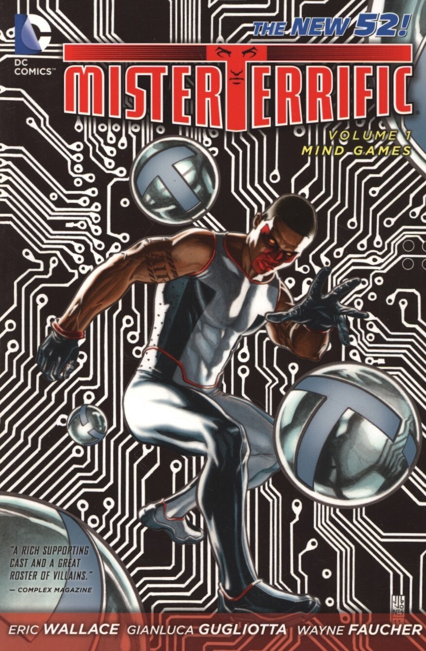 Item: Mister Terrific TPB #1 | Publisher: DC | Cover Date: May 2012 | Writer: Eric Wallace | Artist: Gianluca Gugliotta, Scott Clark, Oliver Nome | Cover Artist: J.G. Jones | Appearances: Mr. Terrific (Michael Holt) | Storylines: Mind Games | Notes: Collects Mister Terrific #1-8 | With Economy shipping, each additional comic ships for just 50 cents more to customers in the USA. This listing contains a stock photo and information from ComicBase™ and © Human Computing. The stock photo is for reference only. If you would like to see a photo of the actual item, please message us prior to purchasing.Seller Information