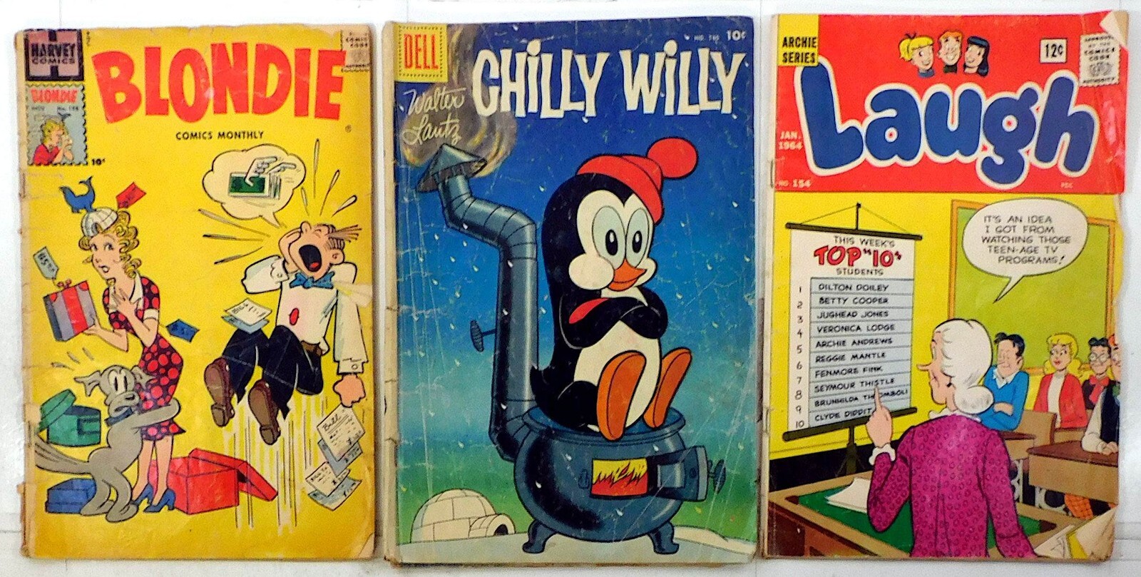 Mixed Lot 3 #Blondie 108, Four Color Chilly Whilly 740, Laugh 154 1957 Comics