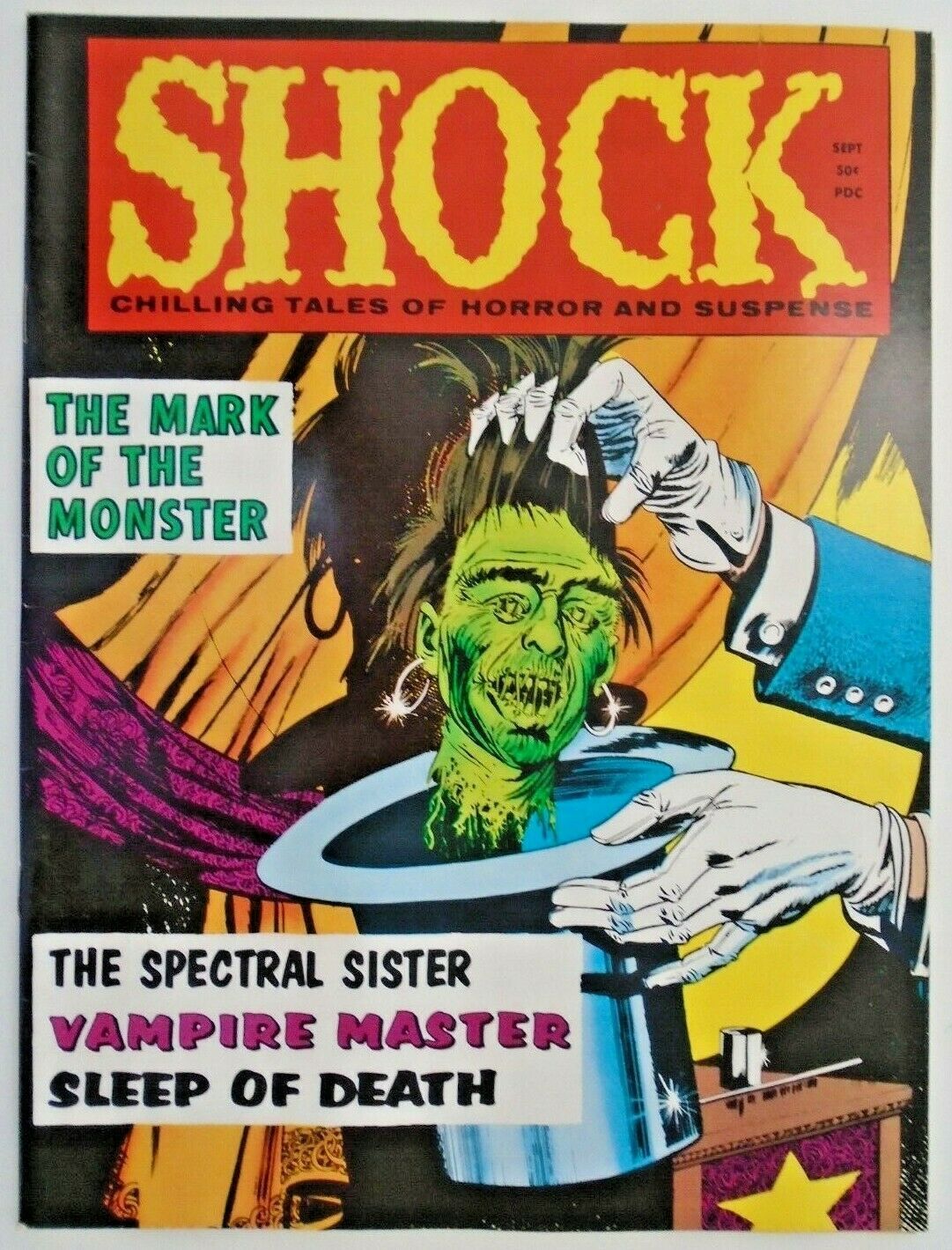 Shock (1969) v2, #4vf/nm Jay DisbrowThe "mm" preceding this listing indicates that this book is one copy of a special collection of (mostly) Monster Magazines. We're differentiating these, because this is arguably the nicest magazine collection we've picked up in our 42 years of selling back issues. Books graded nm- could often be candidates for best copy in existence. Even the vg condition copies have above average gloss, and many of these books are extremely hard to find - some I was unable to find a copy for sale on the internet in any condition! Strict grading.We will gladly combine orders in order to save you shipping. Thank you for patronizing with Friendly Frank's!