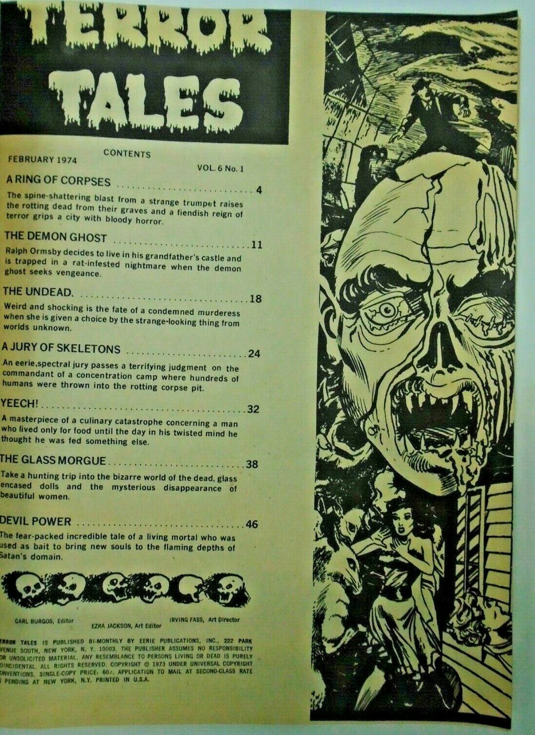 Terror Tales (1969, Eerie) v6, #1vfThe "mm" preceding this listing indicates that this book is one copy of a special collection of (mostly) Monster Magazines. We're differentiating these, because this is arguably the nicest magazine collection we've picked up in our 42 years of selling back issues. Books graded nm- could often be candidates for best copy in existence. Even the vg condition copies have above average gloss, and many of these books are extremely hard to find - some I was unable to find a copy for sale on the internet in any condition! Strict grading.We will gladly combine orders in order to save you shipping. Thank you for patronizing with Friendly Frank's!