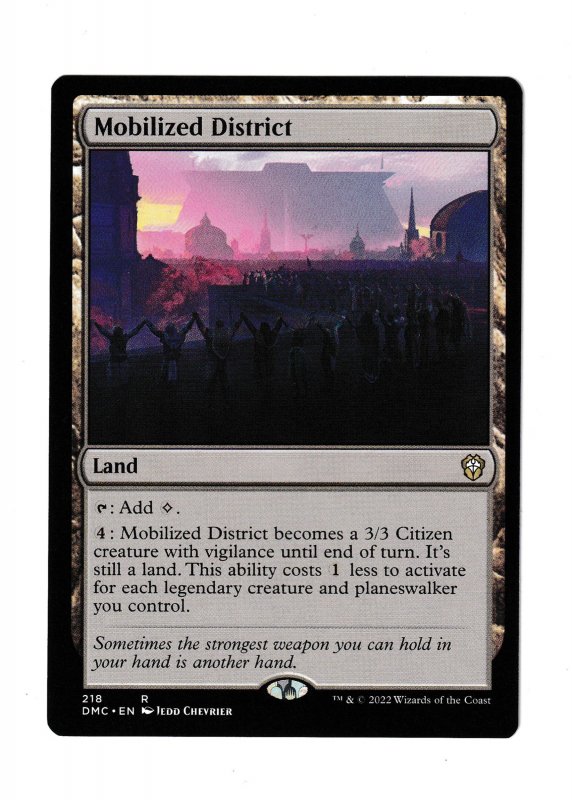 MOBILIZED DISTRICT | RARE | COMMANDER: DOMINARIA UNITED #218 | MTG 2022