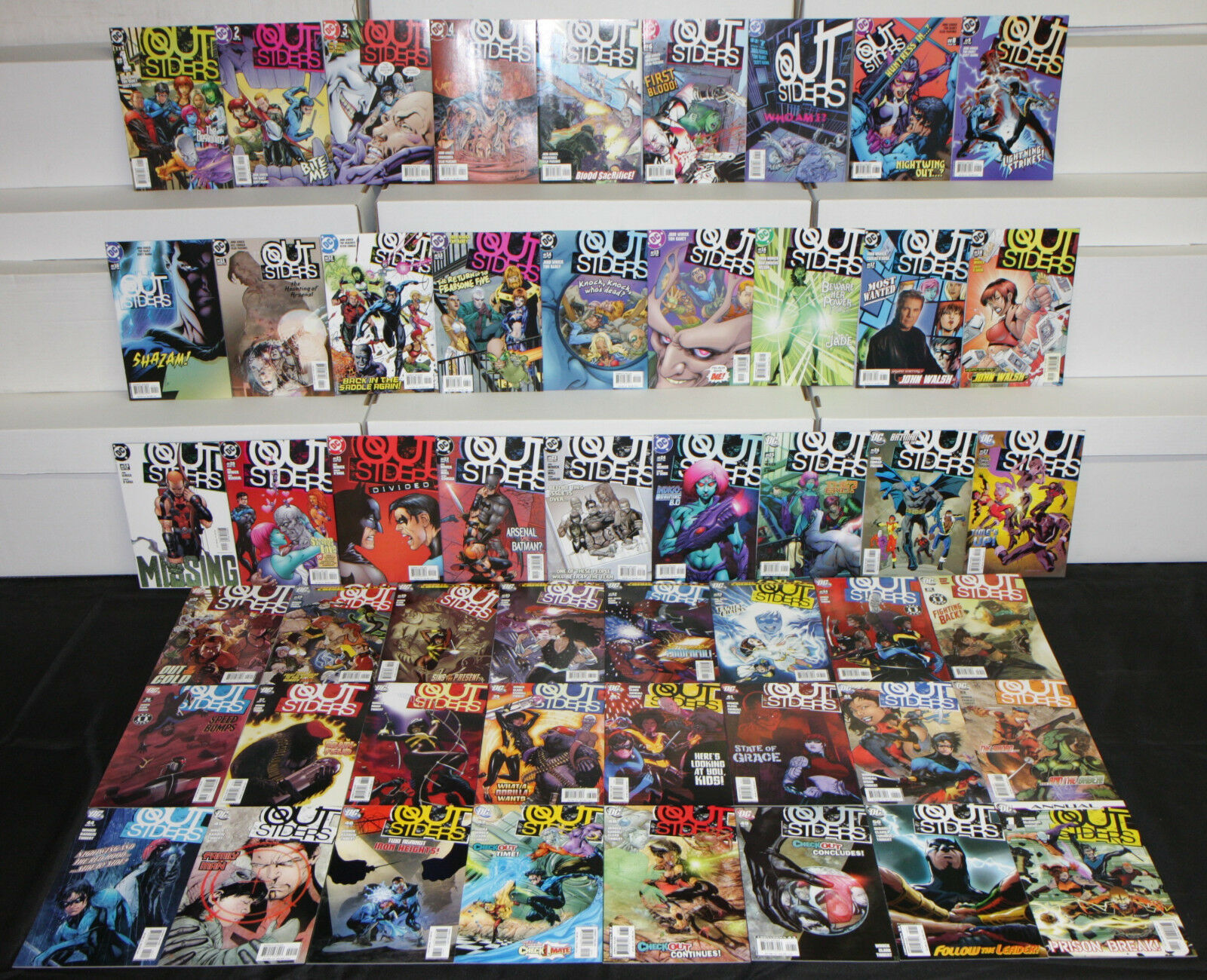 Condition: High grade. See photo. Grade: High Modern DC OUTSIDERS VOL. 3 51pc Count High Grade Comic Lot Batman Nightwing GRAND TOTAL PIECE COUNT --- 51 comics -Outsiders Vol. 3 #1-50, Annual #1 Will ship to Worl ... Read More