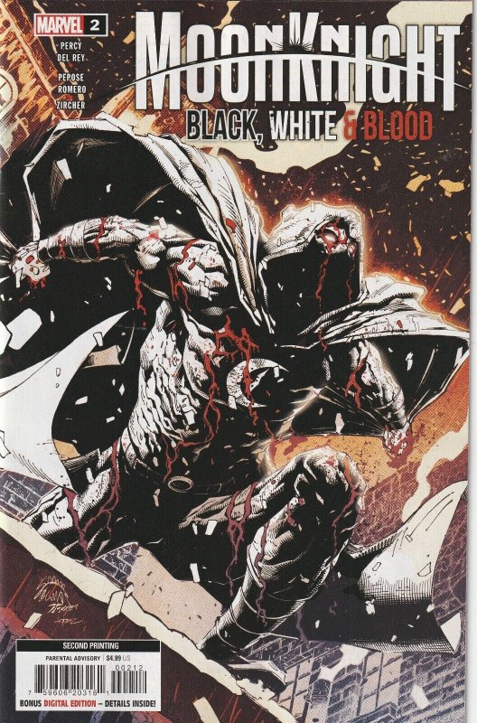 Moon Knight Black White & Blood # 2 Variant 2nd Print NM Marvel [J6]