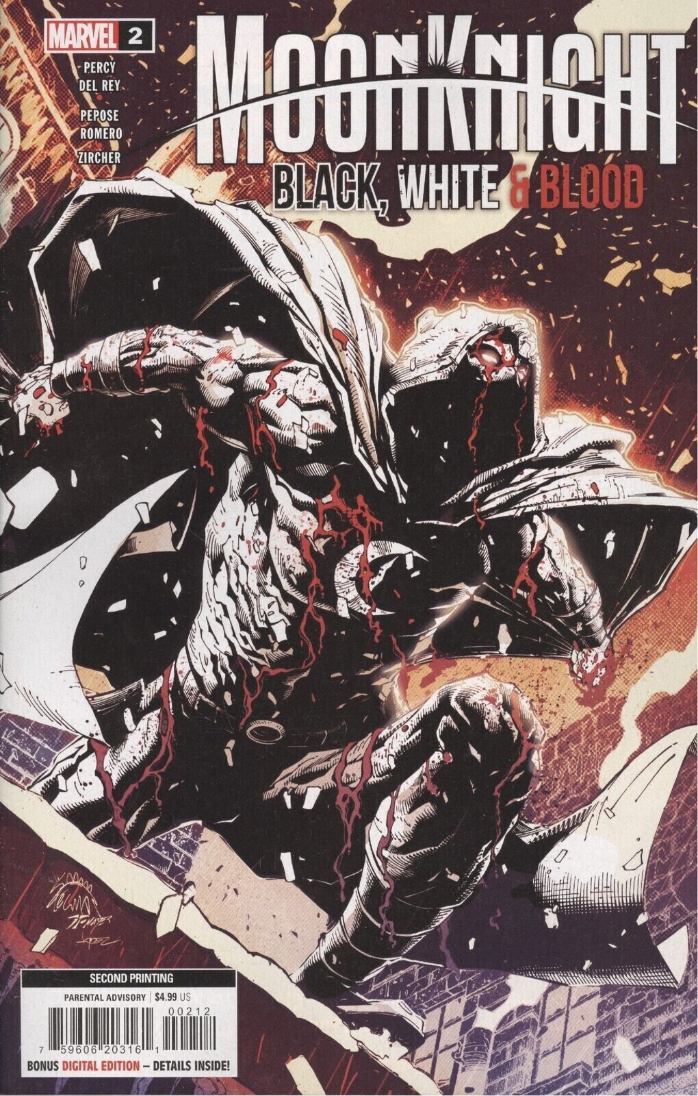 Moon Knight: Black, White & Blood (2022) #2 VF/NM Second Printing Variant Cover