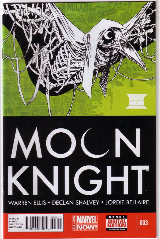 modern age superhero comic book Moon Knight Vol 5 3 Moon Knight #3 VF volume 5 Date: July, 2014 Publisher: Marvel Comics Rating: T+ Format: Direct Print: First Writer: Warren Ellis Artist: Duncan Shalvey Col ... Read More