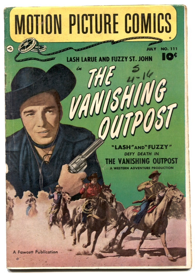 Grade: VG Motion Picture Comics #111 1952- VANISHING OUTPOST- Lash LaRue VG Vanishing Outpost - Lash LaRue and Fuzzy St. John. Photo cover. Grade: VG SKU: LI-49-272
