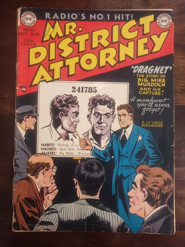 Mr. District Attorney 10 (1949) low grade Golden age comic Cover is detached