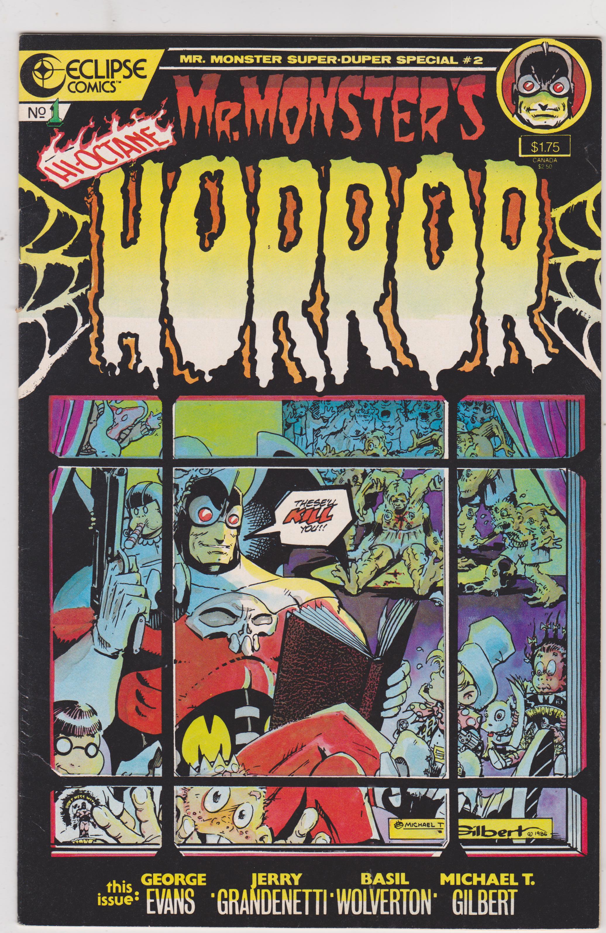 Mr. Monster's Hi-Octane Horror #1 by Eclipse Comics copyright 1986. I have graded the comic book, using the Overstreet Grading Guide, at FINE+ with the following defects: Couple of light stress marks along the. The corners are rounded. There is yellowing of the pages.Seller Information