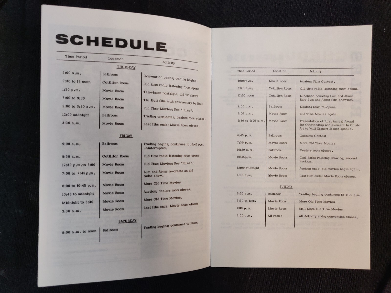 Grade: 8.5MultiCon Convention Program 1972 - The Spirit cover art (9.0/9.2)Size: 8.5" x 5.5"This item was uploaded by OR.If you have any specific questions or requests, please ask us prior to ordering and we'll get back to you as soon as we can.If there are any problems with your order whatsoever, please message us before leaving feedback and we'll be happy to work with you to fix the situation!We ship worldwide, combine purchases, and charge exact shipping. The price may vary based on size, weight, and location. If you are automatically overcharged for shipping, message us and we'll be happy to revise the invoice or refund you the excess amount. If you have any questions regarding shipping, please message us.International Buyers - Please Note:Import duties, taxes, and charges are not included in the item price or shipping cost. These charges are the buyer's responsibility.Please check with your country's customs office to determine what these additional costs will be prior to bidding or buying.Payment can be made by PayPal and credit cards directly.120,000+ items in total in my Hip store!Frequently Asked Questions:When are your operation hours?Our in office hours are Monday - Friday, 11 am - 8 pm. We are not open on weekends, so if you send us a request on Friday evening we won't get back to you until Monday afternoon. Please don't take it as us ignoring you! We will work on your request Monday and get back to you as soon as we can. Also, if you order from us on a Friday evening or Saturday morning we won't start processing your order until we open on Monday. That means on Monday it will be pulled and prepped for shipping, then picked up by the postman on Tuesday morning.When will you ship my item? The tracking hasn't moved.We realize you're eager to get your item, so if the tracking hasn't moved in a few days please don't be concerned. We give the postman a lot of packages daily, sometimes as many as 100, so he does not scan each item for us upon pickup as he says it would be too time consuming for him to do so. If you get a tracking number from us, that almost always means your item was picked up by the postman the next business day. The USPS is also imperfect. There are times when the tracking won't even show movement until it's in your area's regional distribution center. This is normal in our experience.Is the item pictured the exact one for sale?Yes! We don't use stock images and go through great lengths to photograph everything we list. The item pictured is exactly what you should receive UNLESS it is a fixed price listing with multiple items available.How do you grade?Grading is very subjective, but we are professionals with decades of grading experience between us who try the best we can to accurately describe the condition of the items we list.Anthony is an Overstreet Comic Book Price Guide AdvisorDo you combine shipping?Yes, of like items. Such as: several comics can fit in one cardboard mailer, as can more than one record. Multiple art pages can easily be combined because they are light and thin. Where combined shipping differs is with size and weight. For instance, two statues require a much bigger box. Same goes for CGCs, as the package gets bigger and heavier as you go.Do you ship well? I've had some bad experiences...You needn't worry; we are professionals who value your business and want your item to arrive safely as much as you do. I have been collecting for over 30 years. I send out items the way I would like to receive them.The tracking says my item is "OUT FOR DELIVERY" in New Jersey. Why is that?If the tracking indicates that the item is "OUT FOR DELIVERY" in NJ don't worry, it's just what the tracking says when it's carried over from the postman to the sorting center. This is normal for our Post Office and will not impact you receiving your item in a timely matter.What is the difference between a RUN and a LOT?Good question. A RUN will be a collection of consecutive issues with no breaks in between them. If it says RUN of #s 1 - 50 you will receive 50 consecutive comics. A LOT will be within a certain range, so a 50pc LOT will not contain consecutive books.I changed my mind after successfully winning the auction or fixed price listing, will you cancel the transaction?Please only bid or hit BUY IT NOW if you are willing to follow through and pay for the item, we will not cancel the transaction. As a seller, Hip penalizes us every time we cancel an order, so it is detrimental to our business to do so. Therefore if you will not pay, then you'll have to let Hip cycle this to an "unpaid item" and accept whatever action Hip deems necessary.120,000+ items in total in my Hip store!AS SEEN ON TVAnthony is always interested in doing business and answering your questions. If you are new to collecting or have something to sell, feel free to ask any questions that you may have.120,000+ items in total in my Hip store!Small, Regular, and Large Portfolios available; see my Hip store!