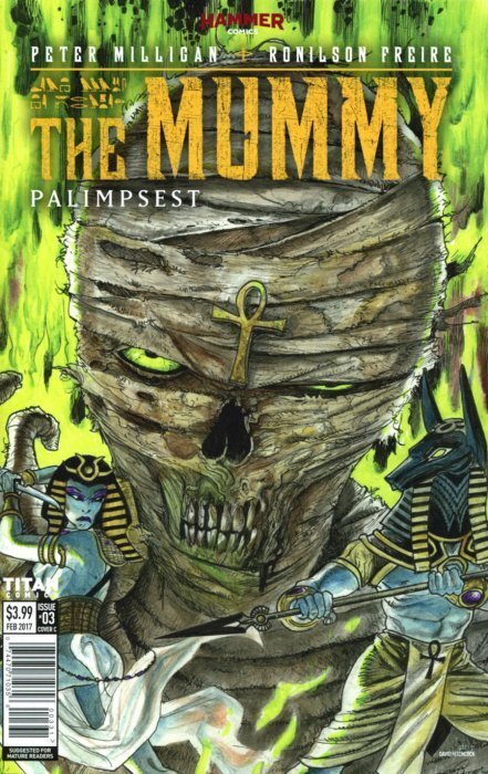 Item: Mummy, The: Palimpsest #3C | Publisher: Titan | Cover Date: February 2017 | Writer: Peter Milligan | Artist: Ronilson Friere | Cover Artist: David Hitchcock | Notes: Cover C by Hitchcock | With Economy shipping, each additional comic ships for just 50 cents more to customers in the USA. This listing contains a stock photo and information from ComicBase™ and © Human Computing. The stock photo is for reference only. If you would like to see a photo of the actual item, please message us prior to purchasing.Seller Information