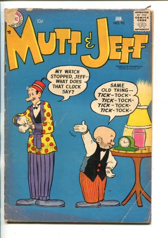 MUTT & JEFF #92 -1957-DC-WACKY COVER-good/vg This issue features a wacky cover. 1957 Grade: G/VG SKU: CTR-68-089